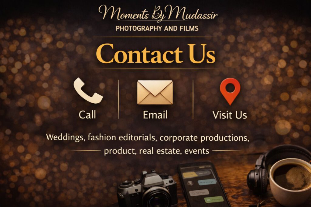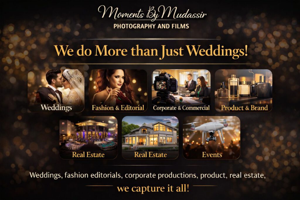 Moments By Mudassir Photography and Films LLC delivers high-end, cinematic photography and films across the UAE and Pakistan. With over 15 years of professional experience, we specialize in weddings, fashion, corporate, commercial, product, real estate, and premium event productions. We craft refined visual stories with artistic vision, technical excellence, and a deep commitment to quality designed to elevate brands and preserve moments that last a lifetime.”